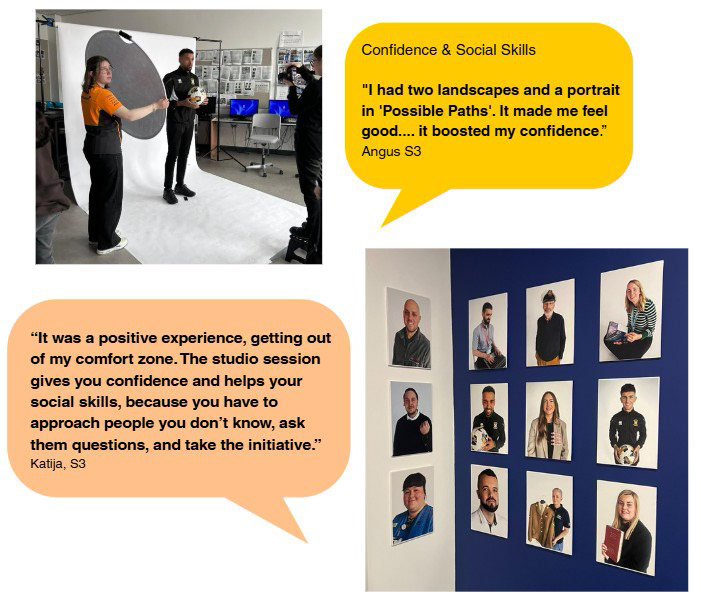 The structure is intentionally inclusive. Pupils are invited to create both a landscape and a portrait, with an in-school portrait session involving former pupils returning to be photographed and hosted by current learners.